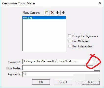 4、然后就是選擇vscode程序的位置,點擊下面三欄中的第一欄后面的三個點按鈕選擇vscode程序;如下圖所示;