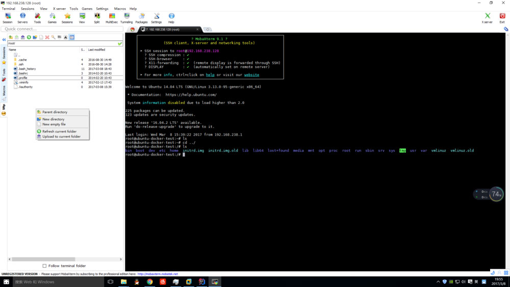 連上遠(yuǎn)端服務(wù)器之后,便可以通過shell命令來操作我們的服務(wù)器了,比如ls列出當(dāng)前目錄下的所有文件,MobaXterm自帶一套彩色的配置,這是我喜歡它的原因之一