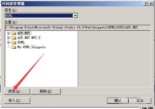 4、進(jìn)入到了代碼段管理器的界面當(dāng)中,進(jìn)行點(diǎn)擊“添加“”按鈕。