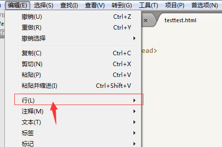 4、點擊了編輯菜單之后,彈出了下拉菜單中進行選中為“行”的菜單。