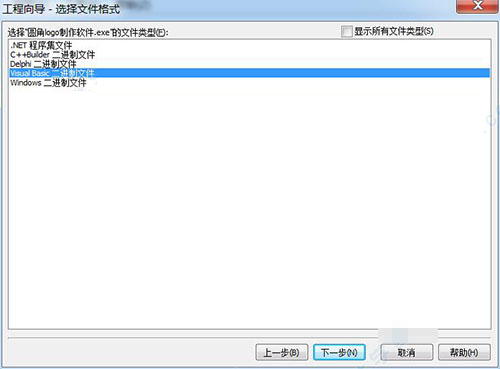 4、然后軟件會自動識別此程序的語言類型,比如我剛才選擇的那個程序即為一個windows二進制文件,然后點擊下一步,當然可能程序的自動識別并不是最準確的,如果你確切地知道某程序的編寫語言,你也是可以自定義的;