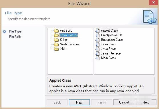 第三步,再在復選框中點擊File,彈出一個新的對話框,選擇Java Classe!然后點擊Next