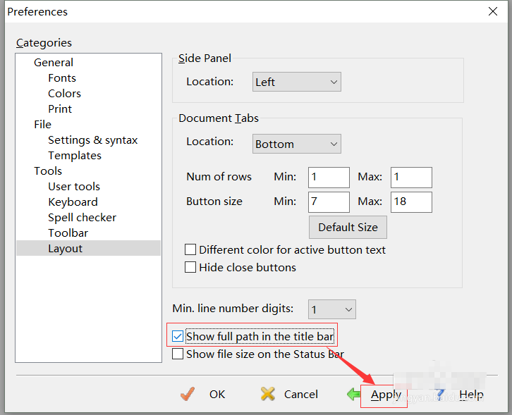 5、然后勾選右邊的Show full path in the title bar,再點擊下方的Apply。