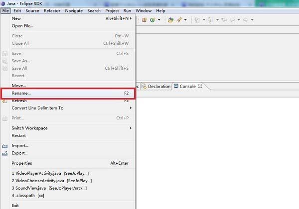 2、選中項目后,點擊“File----------->Rename”,如下圖所示: