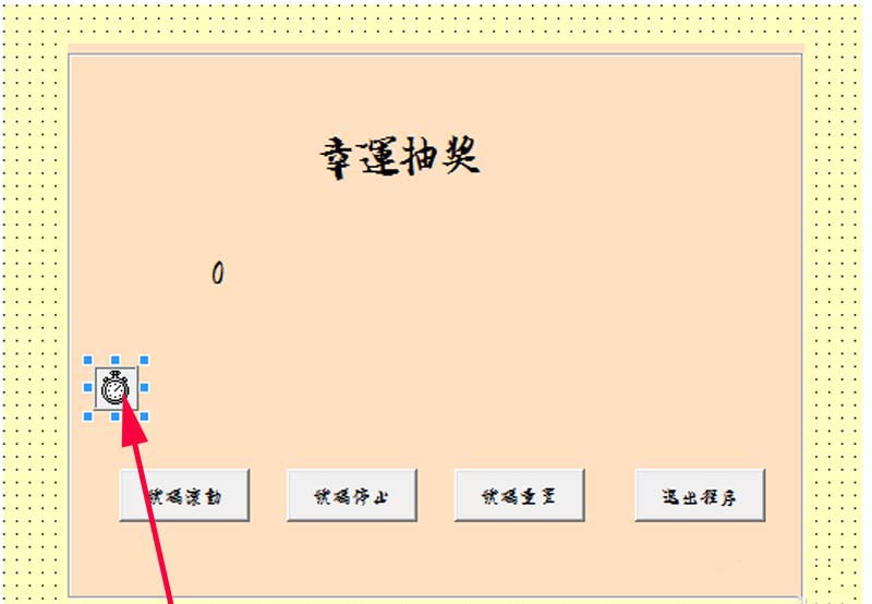 8、接著選擇工具箱里計時器控件并雙擊,在frame1上顯現出來該控件,該控件的作用很大,起到計時作用,同時需要注意的是在程序運行時控件是不顯示出來的。