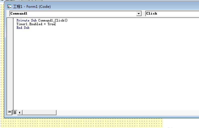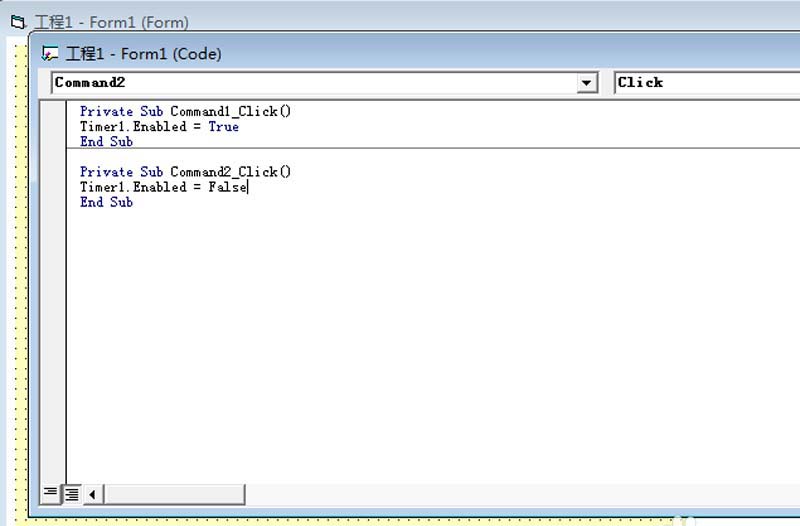 10、雙擊號碼停止按鈕,輸入代碼為Timer1.Enabled = False,起到的作用是觸發器停止工作。