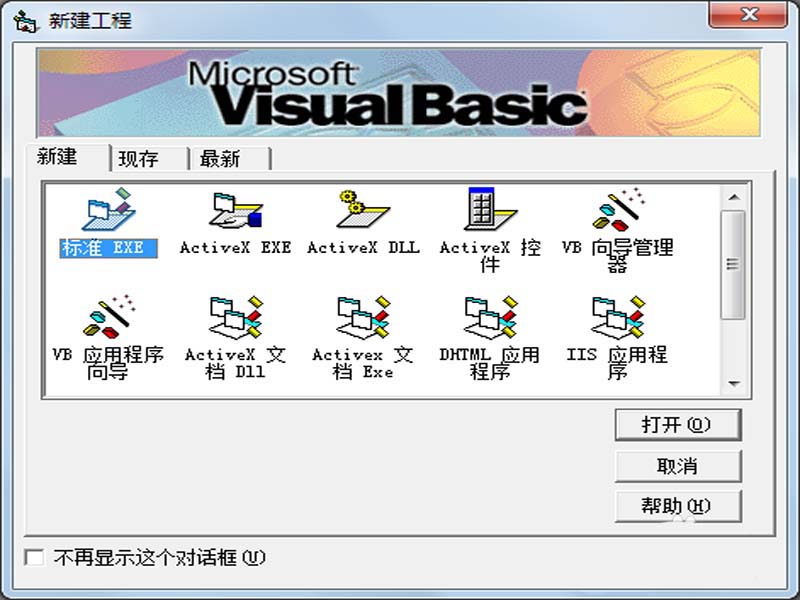 1、首先啟動vb6.0,執行文件-新建命令,彈出新建工程對話框,在該對話框中選擇標準的exe后點擊打開按鈕,進入vb程序主界面。