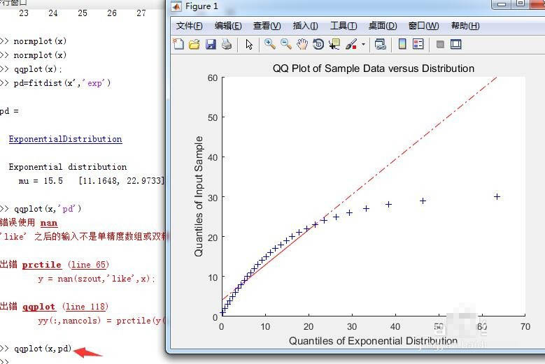 3、關于做一個自己指定的的概率分布函數圖,可通過fitdist函數完成,舉一個例子,如圖