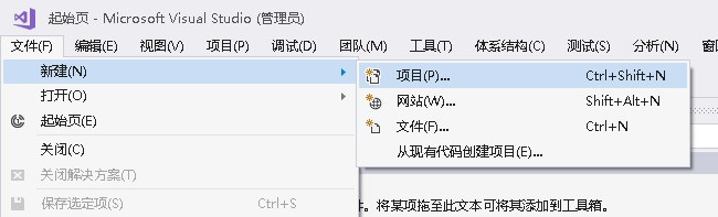 1、打開visual studio2017軟件,進入軟件主界面的菜單欄。在菜單欄中選擇“文件”命令,可以看到“新建”、“項目”來新建一個項目