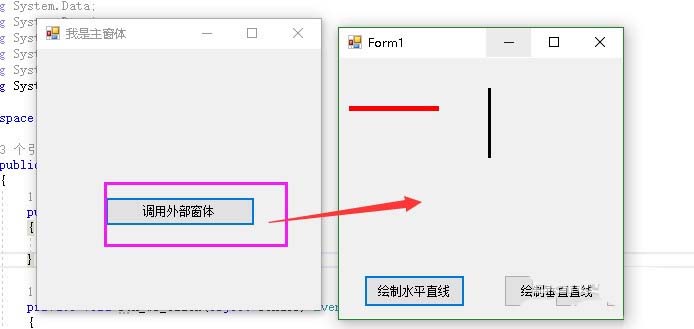 10、編譯運行程序,單擊“調用外部窗體”。是不是可以看到調用了“繪制直線”的這個窗體呢。