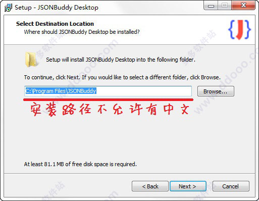為了正常使用JSONBuddy,安裝路徑不允許有中文!請(qǐng)安裝到全英文路徑中!