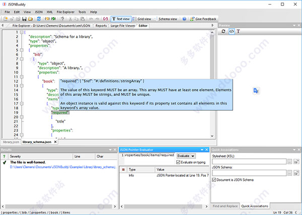 JSONBuddy是一款適用于Windows的JSON編輯查看器。支持查看、編輯和格式化JSON數(shù)據(jù),可快速檢查JSON模式的正確性驗(yàn)證。在點(diǎn)擊創(chuàng)建無差錯(cuò)的JSON模式,對(duì)于JSON模式的廣泛草案全面支持,支持直接跳轉(zhuǎn)到在JSON實(shí)例的缺陷是快速和容易的測(cè)試方案,自動(dòng)格式和HTML格式創(chuàng)建工具JSON模式文檔,可以讓你在編輯json的時(shí)候更加方便,有需求的朋友請(qǐng)下載使用!