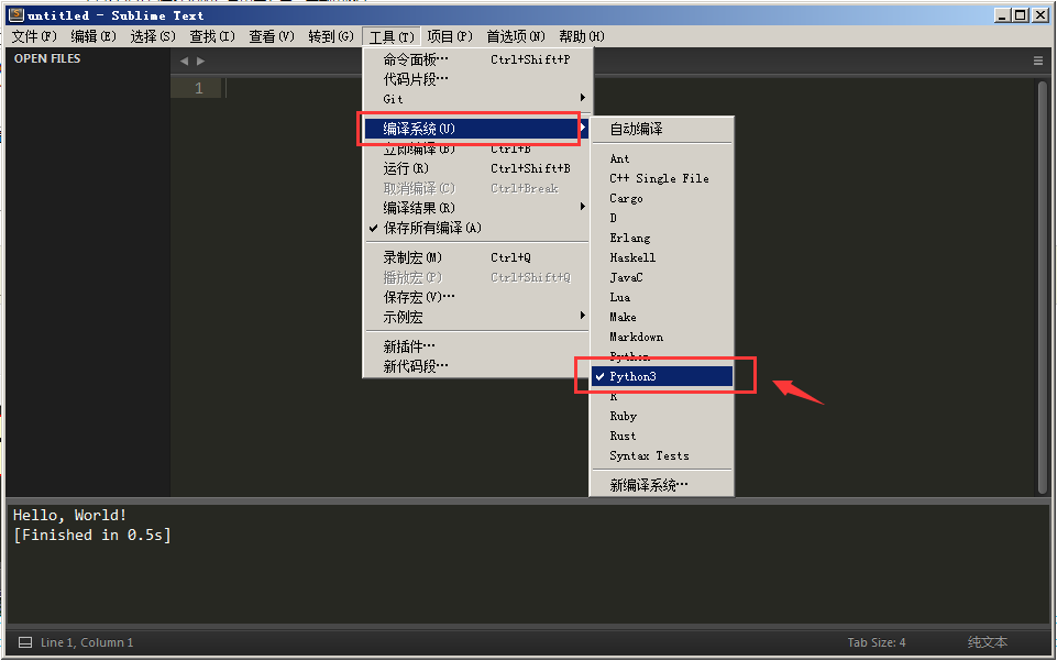 [Tools]-->[Build System]-->[New Build System...],然后發現新建了一個配置文件。