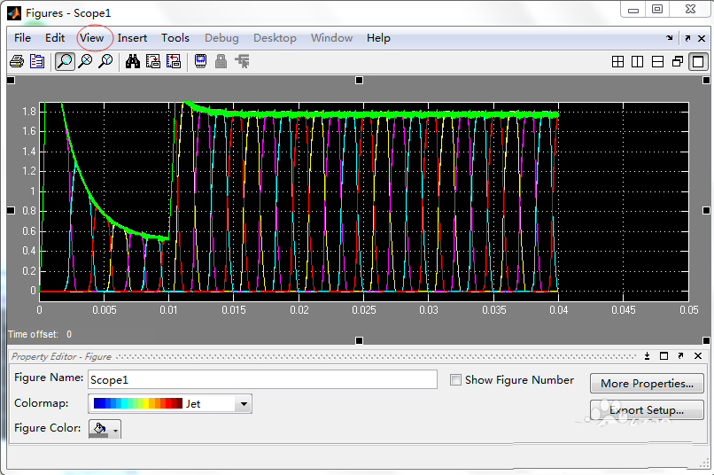 7、這次我們點(diǎn)擊示波器工具欄Edit->copy figure,波形圖就拷貝到了粘貼板