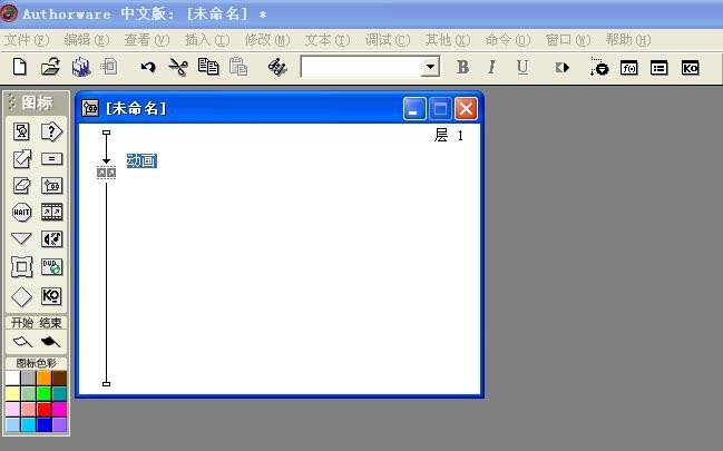 1、打開Authorware,進入該軟件的工作界面,左邊有很多工具,右邊是一個空白的創作頁面;
