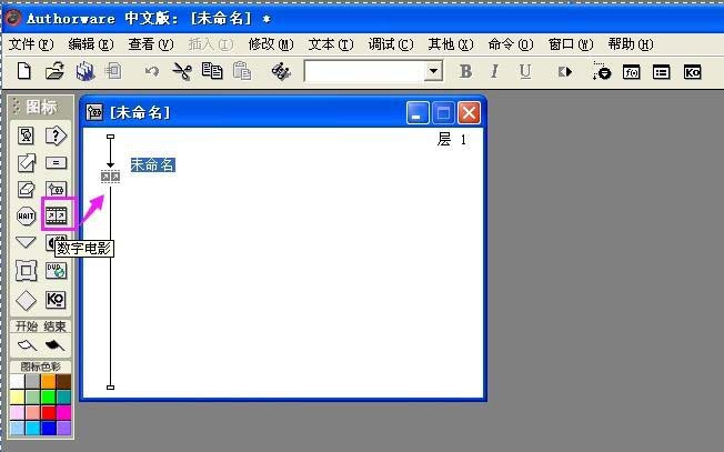 2、將左邊工具箱中的數字電影圖標拖到右邊的流程線上;