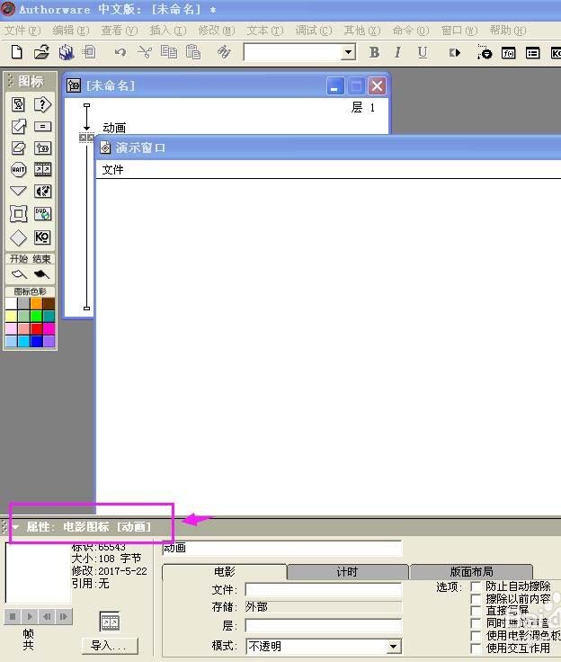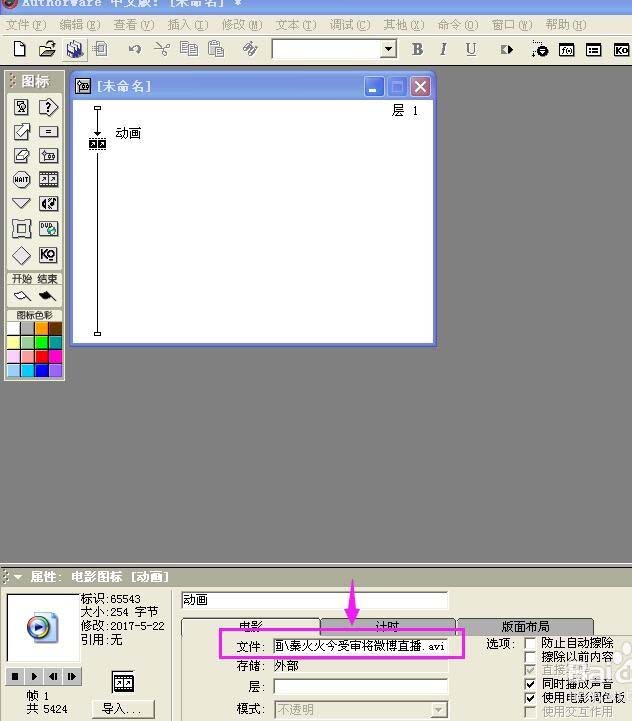 4、雙擊動畫圖標,打開電影圖標屬性對話框;