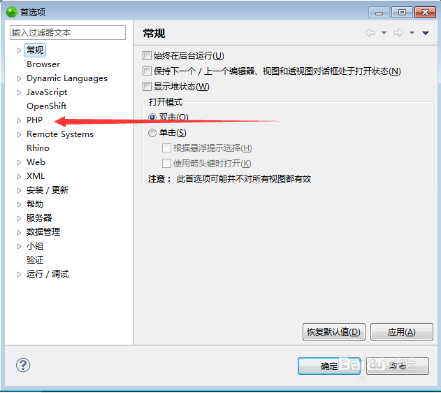 3、這樣就打開這個整體的界面了,因為這個集成開發(fā)環(huán)境支持的語言比較多,我們想要調整的是PHP 的語法顏色,所以我們要找到PHP這個選項