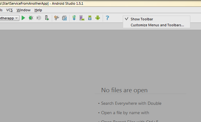 3、android studio工具欄被隱藏,工具欄就不見了。