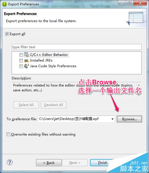 3、如圖輸入一個文件路徑后,就可以點擊Finish保存了。導入的方法,選擇Import,按提示即可完成。