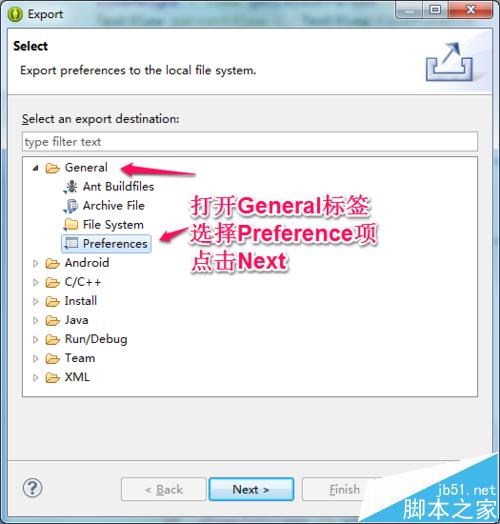 2、在彈出的對話框中選擇 Preference項目,然后點擊Next。操作如圖