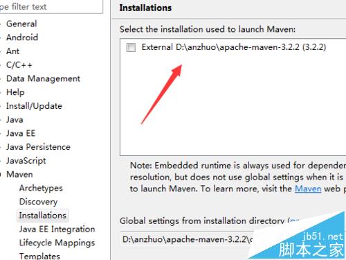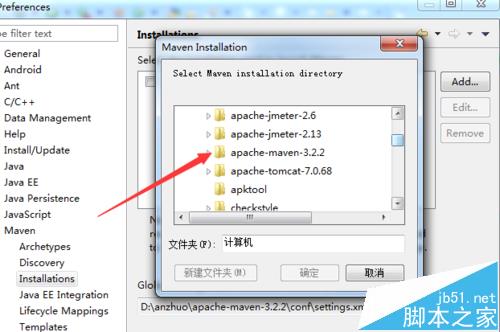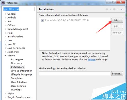 3、在左側(cè)的列表中選中為maven的選項(xiàng),進(jìn)行點(diǎn)擊installations的選項(xiàng),進(jìn)行選中為add的添加。