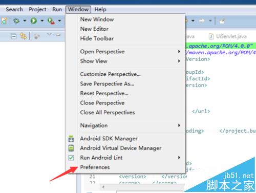 2、彈出了下來菜單中進(jìn)行選擇為prefernces的選項(xiàng)菜單。