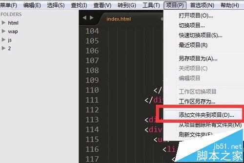 1、sublime如何新建工程、項目的。第一可以直接把一個或者多個工程拖到左側FOLDERS文件夾管理界面;第二可以打開:項目->添加文件夾到項目。