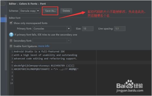 4.我們會發(fā)現(xiàn),默認(rèn)的主題不能被修改,所以我們需要自定義一個,點(diǎn)擊Save as.. 自定義一個名字,我們就發(fā)現(xiàn),行距和字體的大小就可以修改了