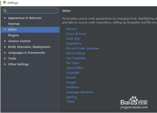2.然后找到Editor,然后再找到editor下的Color & Font