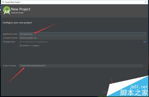 3、系統(tǒng)會自動彈出新建項目的設置窗口,第一個需要我們設置的是項目的名稱以及儲存位置,為了避免錯誤產(chǎn)生,盡量都使用英文名稱以及英文儲存路徑。