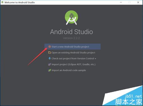 2、我們進行新項目的建立,在起始頁面的窗口中點擊第一個“start a new Android studio project”,開始進行項目的新建操作。