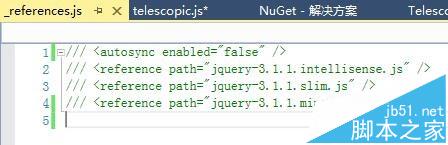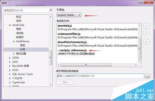 4、在工具-選項-文本編輯器-JavaScript-Web中增加~/scripts/_references.js得引用。手工錄入相對路徑.