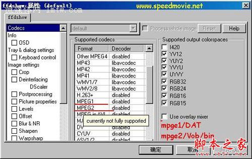 VCD和DVD格式的目前還不支持,因此不能利用ffdshow在壓制VCD-rmvb時增加亮度和添加水印