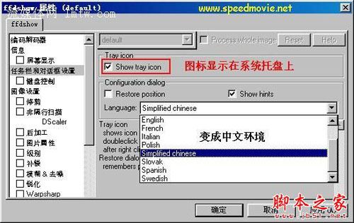 FFDShow可以稱得上是全能的解碼、編碼器.最初FFDShow只是mpeg視頻解碼器,不過現在他能做到的遠不止于此.它能夠解碼的視頻格式已經遠遠超出了mepg4的范圍,包括indeo video,WMV,mpeg2等等.同時,它也提供了豐富的加工處理選項,可以銳化畫面,調節畫面的亮度等等。