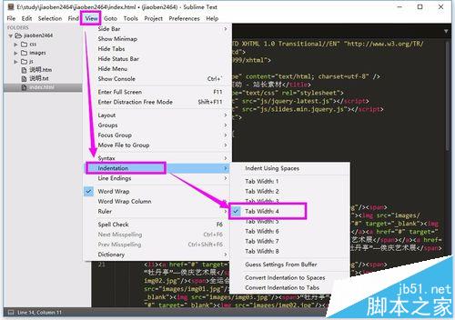 5、你也可以在菜單欄中點擊“view”——“indentation”——“tab width 4”;