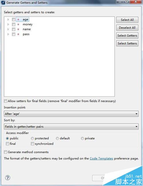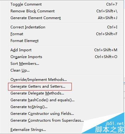 3、按快捷鍵shift+alt+s彈出如下對話框,選擇generate Getter and Setter選項,或者下一步