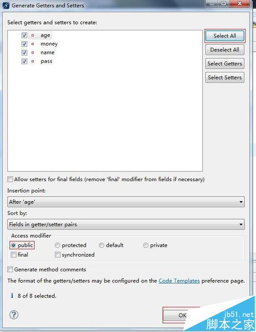 6、點擊select All,選擇Access modify為public點擊ok