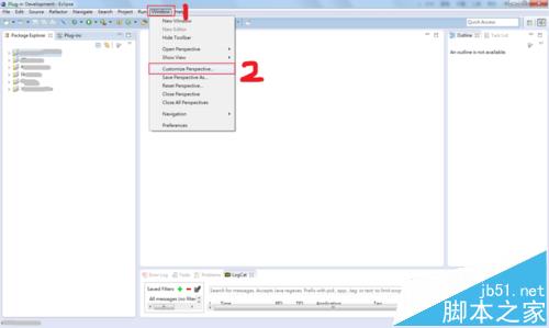2、點擊菜單Window >> Custom Perspective (you will see Android and AVD Manager were disable)窗口