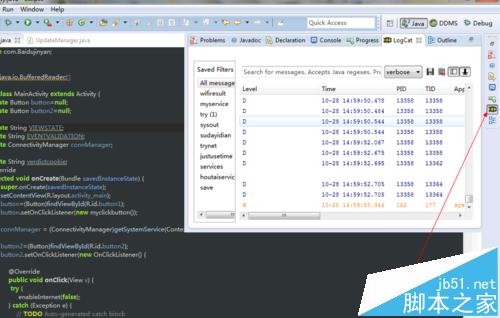 2、這個時候你就會看到你要的logcat了,如圖所示。