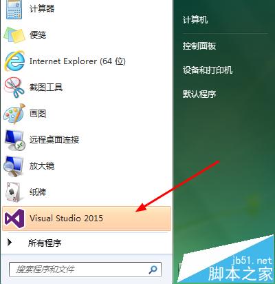 1、點擊開始按鈕,在上拉窗口中找到visual studio 2015。