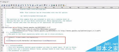 4、同時,打開settings.xml的文件,修改 如圖的內容,為 剛創建的 settings.xml的存放地址, jar庫 都是放在 repository 文件夾下的。