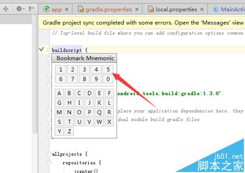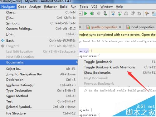 5、這樣在代碼中就會彈出了一個Bookmark mnemonic的選項,然后就選擇一個標簽的數字信息。