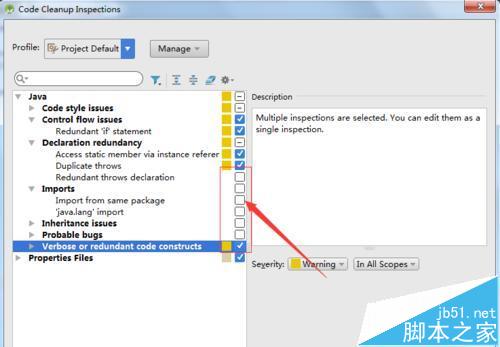 4、進入到了code cleaup inspections的選項框中,根據(jù)的自己需要進行勾選上檢查的設(shè)置。
