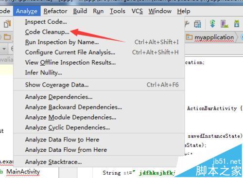 1、在Android studio菜單中進行選擇為analyze的選項的菜單。