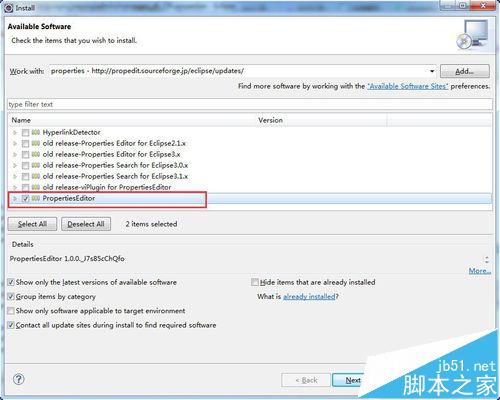 4、稍等兩分鐘,就會出現(xiàn)插件列表,選擇PropertiesEditor,然后Next.