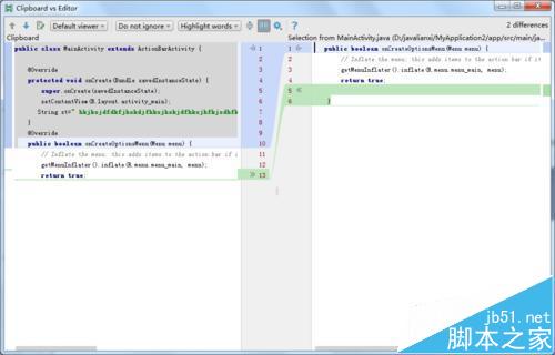 3、這樣可以選中的代碼與剪切板中的代碼進(jìn)行對(duì)比。