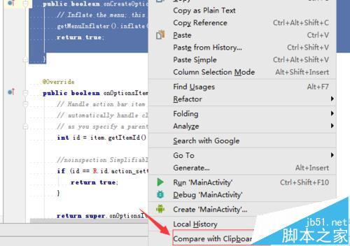 Android studio會(huì)經(jīng)常把代碼進(jìn)行剪切之后,所剪切的內(nèi)容就會(huì)保存到了Android studio的剪切板當(dāng)中,所以對(duì)了當(dāng)前的編輯的內(nèi)容代碼,是可以直接對(duì)比到代碼與剪切板中的進(jìn)行對(duì)比,來(lái)查看是更改了哪些的內(nèi)容。