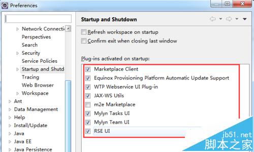3、此時在右側可以看到所有的啟動項,在eclipse啟動的時候會自動啟動。
