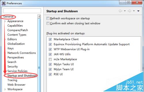 2、在左側依次選擇【general】->【Startup and Shutdown】選項